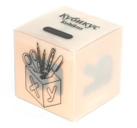 Kubikus is a wooden desktop organizer. The sides have cutouts in the shape of letters which make it easy to insert various small household and office items. The bottom is not fixed and freely moves inside the cube, always settling at the bottom due to gravity.